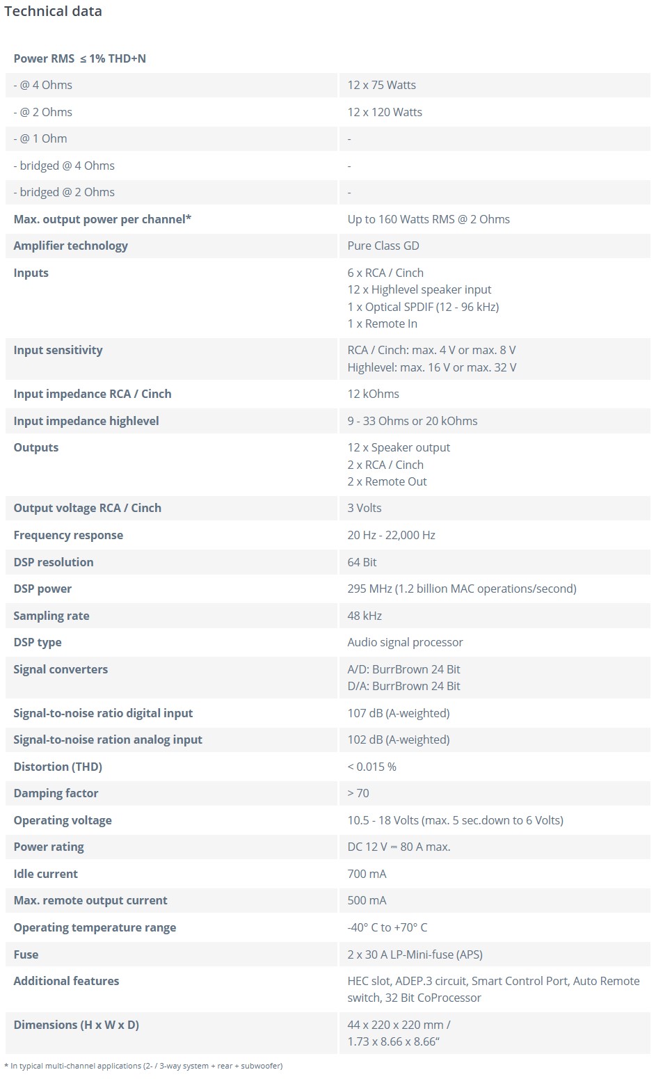 12×75W @ 4Ω , 12×120W @ 2Ω