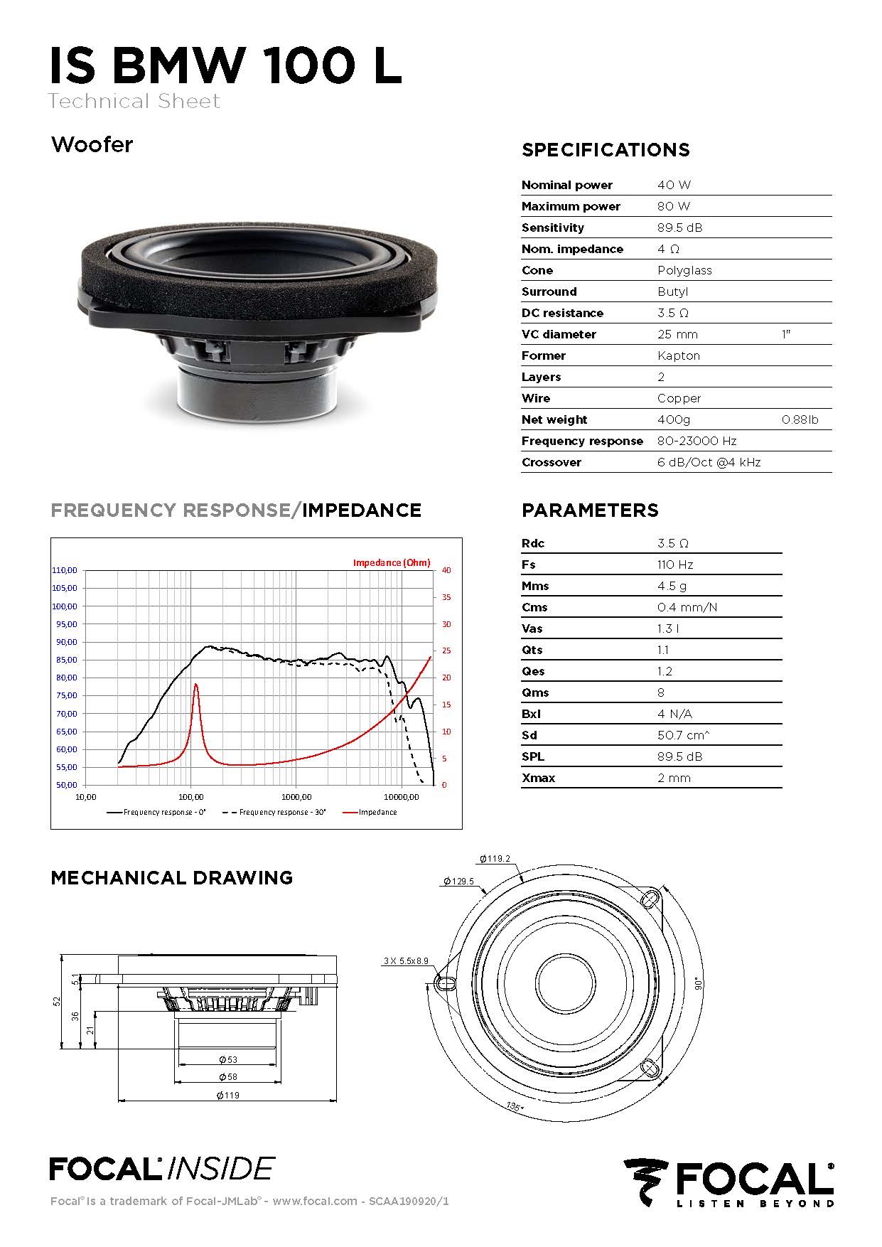 포칼 (FOCAL) IS BMW 100L , V2 4인치 콤포넌트 스피커